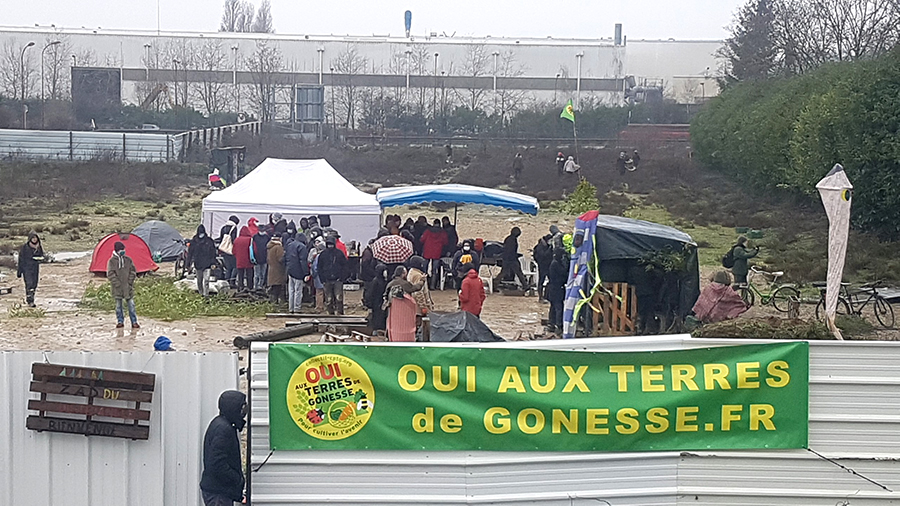 On Sunday, February 7, 2021, just under a hundred people—comprising members of the Collectif pour le Triangle de Gonesse (Collective for the Gonesse Triangle ; hereafter “CPTG” or “the collective”) [1] and others sympathetic to the cause defended by this collective since 2011—began to occupy an area of wasteland on the edge of farmland in the municipality of Gonesse, 15 kilometers (9 miles) to the north of Paris. One of the collective’s members, Vingt, aged about 30, perched on a palette, read out the following declaration, which was also broadcast on social media :