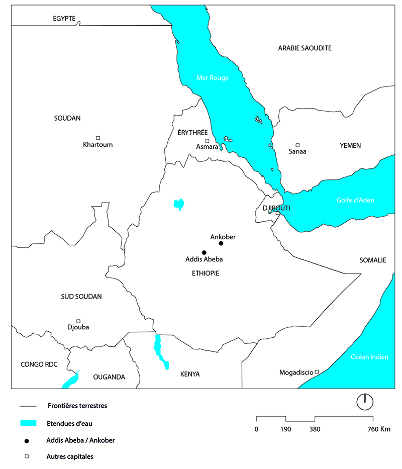 Addis-Abeba accueille 25 % de la population totale de l’Éthiopie, avec une augmentation démographique de 9 millions d’habitants prévue entre 2010 et 2030 (CLUVA 2012). Si le réseau de distribution d’eau conventionnel couvre près de 99,9 % de la surface de la ville, celui-ci dessert de façon satisfaisante seulement une partie de la population à cause des phénomènes d’intermittence élevée et d’importants problèmes de fuites des canalisations. UN-Habitat (2017) rapporte qu’environ 50 à 55 % de la population achète de l’eau auprès de fournisseurs privés ou recourt à des pratiques alternatives pour compléter son accès à l’eau. Nous n’avons pas eu accès aux données concernant la qualité de l’eau, qui reste une question sensible.