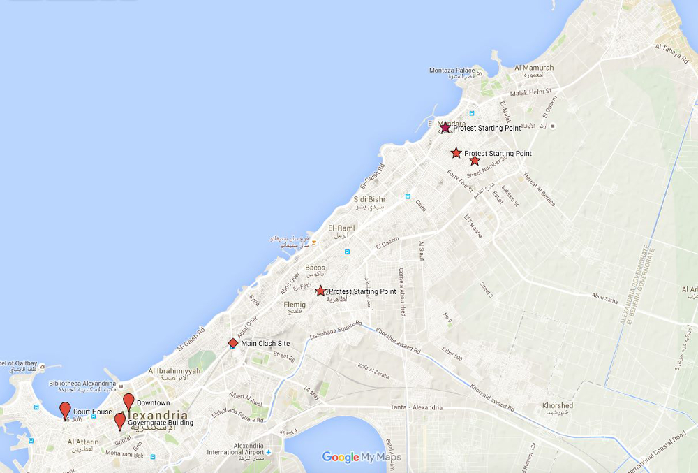 As in Cairo, the first marches in Alexandria were set to start from different neighborhoods, mainly from the eastern districts, home to many informal settlements and lower-income residents (Figure 2). As in many parts of Egypt, these informal neighborhoods in Alexandria are rarely shanty towns or bidonvilles. They usually consist of mid-rise concrete buildings organized along a maze of narrow streets and alleyways (harāt) that make such neighborhoods particularly difficult for the police to control.
