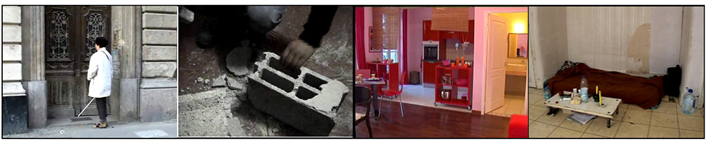 Ce premier film consacré à la mobilisation autour des questions de logement rue de la République et ses alentours (Borja, Derain et Manry 2010 ; Borja 2013) contient déjà nombre d’éléments présents dans les documentaires qui suivront. La vie quotidienne bouleversée par les travaux, l’action présentée comme néfaste de Lone Star (un fonds de pension « texan » qui vient de racheter une partie du parc immobilier), la municipalité qui serait complice de possibles délogements ainsi que la mobilisation d’habitant·e·s et de leurs soutiens. Mais ce sont d’abord les désagréments subis au quotidien par des habitant·e·s que montrent la grande majorité des films. Le son des marteaux-piqueurs et les images de chantiers sont récurrents. Et à la ville en travaux vient s’ajouter la représentation d’une rénovation urbaine exercée violemment contre ceux et celles qui habitent les lieux. Le pourrissement volontaire des logements, les intimidations verbales, la fin des commerces de proximité et l’opacité des procédures sont selon les personnes filmées autant de preuves d’une volonté de déloger les habitant·e·s. À travers ces propos, les films forgent dans leur ensemble une présentation du chantier depuis les problèmes rencontrés et par l’expérience vécue, qui vient en contrepoint de la vision pacifiée promue par les aménageurs.