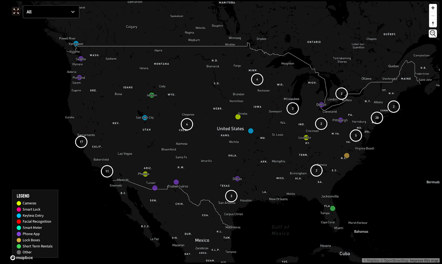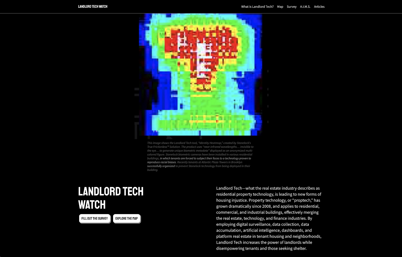 We included the survey and map on our Landlord Tech Watch website in order to learn about other struggles around landlord tech deployment across the US. Because landlord tech is created by private companies and deployed by private landlords, there is no disclosure requirement. The tech industry in fact thrives off nondisclosure agreements. Although landlord tech is also deployed in public housing, which is responsible for answering Freedom of Information Act (FOIA) requests, surveillance-related records still can be rejected for release owing to exemptions related to national security and/or law enforcement. Because of this, there is no central database or public information repository about landlord tech’s geography, scale, or scope. Our survey and map aim to provide a sample of different genres of landlord tech, though we are aware that the data we have collected is limited to those who learn about our site and have the ability to complete the survey.