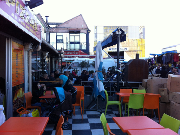 Réfléchissant à l’avenir du marché face au projet Euromed 2, le manager du centre commercial des puces, M. Coudert, affirme que le marché (officiel) a une utilité sociale qu’il doit garder : « C’est un lieu de paix qui contribue à l’apaisement ». Samia Ghali, la sénatrice-maire des 15e et 16e arrondissements, affirme certains principes : « On ne peut garder le marché tel qu’il est, c’est l’anarchie totale, il y a un manque d’hygiène… Il faut réorganiser le marché. » [8] Au départ, en 2009, les pouvoirs publics avaient même envisagé – encore une fois (Manry et Peraldi 2002) –, de le transférer vers l’Estaque. En 2012, les autorités impliquées reviennent sur des principes simples : réorganiser le marché afin d’améliorer les conditions d’hygiène, de sécurité et d’accessibilité.