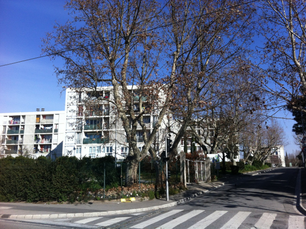 Euromed 1, accompagné par « Marseille, capitale européenne de la culture », a entamé une transformation radicale de la zone portuaire. De l’ancienne entrée du Vieux Port, où se trouve maintenant le MuCEM [2], vers le nord, tout au long des docks de la Joliette, jusqu’à la tour CMA‑CGM de l’architecte star Zaha Hadid, les anciens entrepôts et usines se sont métamorphosés en résidences, centre commercial, scènes de musique. Euromed 2 [3] poursuit aujourd’hui son extension, avec une première phase qui concerne, parmi les 80 hectares couverts par ce projet, la réhabilitation de deux anciens quartiers ouvriers, les Crottes et la Cabucelle, traversés par la rue de Lyon, le chemin de la Madrague-Ville et le boulevard du Capitaine Gèze. Cette zone est simultanément touchée par un projet de restructuration des transports : l’extension de la ligne 2 du métro, de la station Bougainville vers une nouvelle station qui se veut à terme un pôle multimodal [4] au début du boulevard Gèze, à la jonction des deux quartiers cités et du fameux marché aux puces de Marseille, à la porte des quartiers Nord. L’annonce du lancement d’un éco-quartier, confié à Bouygues–CIRMAD, en novembre 2015, dans un périmètre proche du marché, est une nouvelle étape dans la mise en œuvre du projet [5].