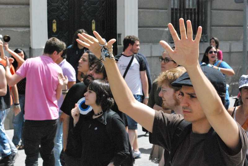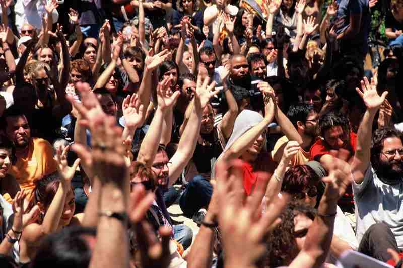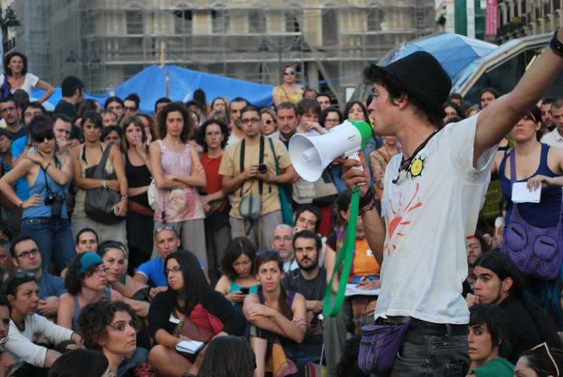 Le mouvement des indignés développe ainsi des techniques de délibération déjà bien rodées, qui seraient notamment issues de l’expérience de pratiques autonomes dans les centres sociaux autogérés [3] et que la commission de « dynamisation » de Puerta del Sol propose de diffuser dans les quartiers, en organisant des ateliers pratiques. Alors que les assemblées générales du campement rencontrent des problèmes dans la prise de décision, liées essentiellement à la recherche du consensus absolu [4], la méthodologie délibérative adoptée par la plupart des assemblées de quartier semble plus flexible. Si l’unanimité est souvent recherchée en suivant l’idée que « tout le monde a la même voix », certaines ont opté pour le vote majoritaire, en considérant qu’un consensus était atteint lorsque 80 % de l’assemblée se prononçait en faveur d’une proposition. En outre, le public plus limité facilite la prise de décision. Les participants sont également soucieux de ne pas perdre leur temps dans des débats infinis, comme l’exprime ce jeune homme à l’assemblée populaire de Carabanchel le 11 juin : « Ce que j’aime bien dans cette assemblée, c’est sa flexibilité, on ne perd pas de temps avec des nuances absurdes ».