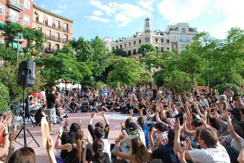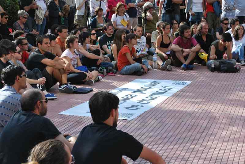 Depuis le 28 mai, des assemblées sont régulièrement organisées dans les quartiers de Madrid, les villes de banlieue et les villages de la région [1]. Au total, plus d’une centaine de territoires sont concernés. La délocalisation des assemblées a été orchestrée depuis Puerta del Sol, une commission « quartiers » se chargeant de l’extension du mouvement des indignés. Ce changement de stratégie vise à enraciner la mobilisation au niveau local, pour éviter qu’elle ne perde son dynamisme.