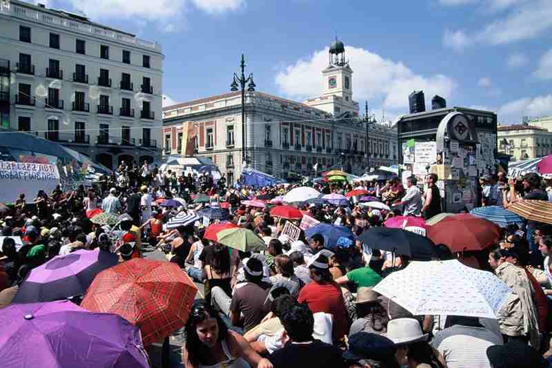 Si la participation est souvent moins importante que lors de la première convocation, les assemblées populaires de quartier réunissent toujours plus d’une centaine de participants un mois après leur lancement. L’affluence est forte non seulement dans les quartiers populaires, mais aussi dans les zones de classes moyennes et supérieures. Les thématiques de prédilection diffèrent d’un quartier à un autre, comme en témoigne le choix des groupes de travail. À Carabanchel, quartier populaire au Sud de la ville, un groupe « économie et travail » cherche à faire le lien avec le mouvement ouvrier. Il prévoit de soutenir les victimes de licenciements dans le quartier et appelle à la grève générale. L’assemblée populaire de Carabanchel a également mis en place un groupe « social » visant à régler des problèmes locaux liés à l’immigration, au logement ou aux services sociaux. À Chamberí, un des beaux quartiers de Madrid, les professions libérales se structurent au sein d’une commission « juridique », composée d’avocats, et d’un groupe de travail « santé » dans lequel « il y a des gens très différents, de toutes les professions : des médecins, des infirmiers et infirmières, des biologistes, des psychologues, etc. ». L’assemblée de Moratalaz, un quartier de classes moyennes à l’Est de la capitale, compte davantage de personnes âgées qui s’impliquent autour des questions de santé et de retraites, tandis que les jeunes s’investissent dans des actions culturelles.