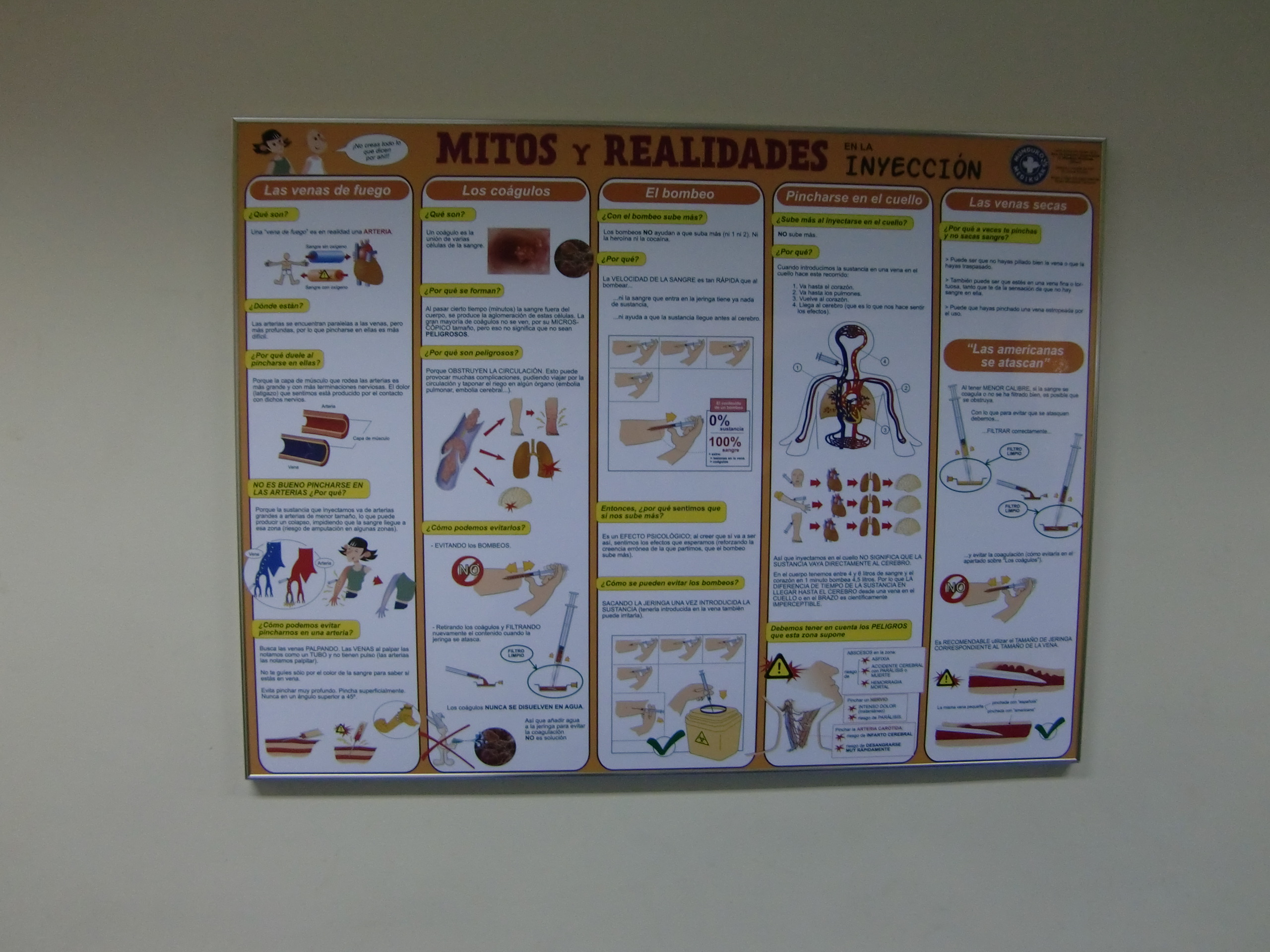 Ceux que l’on nomme communément les junkies ont de fait un rapport précaire à l’espace urbain qui induit une surexposition au risque sanitaire. La saleté des lieux, le manque d’eau et la promiscuité entre usagers de drogues ne permettent pas de requérir le minimum d’hygiène nécessaire à la réalisation des injections sans risque (Bourgois 1992, 1998). La répression favorise également l’exposition au risque des usagers les plus précaires en raison de la nécessaire dissimulation des pratiques et du contexte d’urgence qui ne facilitent pas les stratégies de préservation de soi (Jauffret-Roustide 2010). La consommation dans l’espace public contraint l’usager à être confronté à la peur permanente, au risque de rater sa veine et d’être ainsi soumis à des complications somatiques. La promiscuité ou la précarité conduit aussi au partage de la seringue, donc à la contamination par le sida ou les hépatites. Les salles d’injection peuvent alors constituer des lieux de refuge et des espaces protecteurs, médicalisés et sécurisés pour les usagers les plus marginalisés (Rhodes 2006).