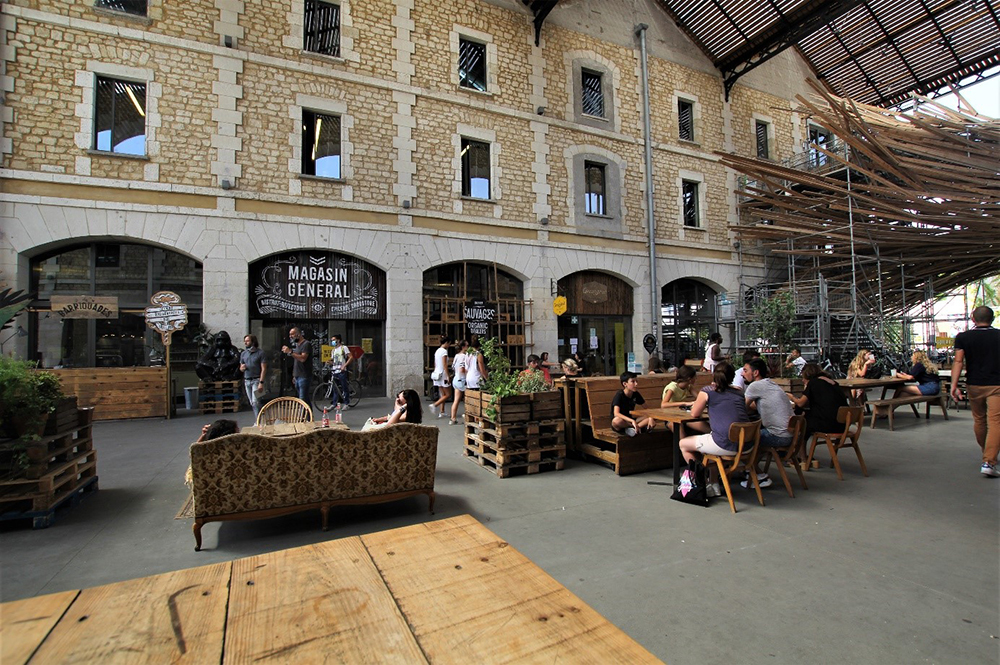 Ils ciblent alors un ensemble de délaissés urbains composés de friches ferroviaires, industrielles et militaires, susceptibles d’accueillir de futurs projets urbains. L’ancienne caserne militaire Niel, haut lieu des cultures urbaines, notamment du graff, répond aux critères recherchés (volume et esthétisme des bâtiments, atmosphère underground…). Initialement promise à la démolition, celle-ci s’inscrit dans le périmètre d’un projet de ZAC, qui sera créée en juillet 2009 [4]. La Communauté urbaine de Bordeaux (CUB) voit ici le potentiel d’un lieu d’expérimentation « vitrine » au sein du futur quartier Bastide Niel et soutient alors largement le projet. Un accord est trouvé début 2009, par la signature de la vente d’1 hectare de friches pour 1,3 million d’euros entièrement financé sur les fonds propres de Philippe Barre [5]. L’obtention d’une labellisation par le Programme des Nations unies pour l’environnement (PNUE) acte le caractère innovant du projet en matière d’environnement, et va grandement favoriser la recherche de financements privés.