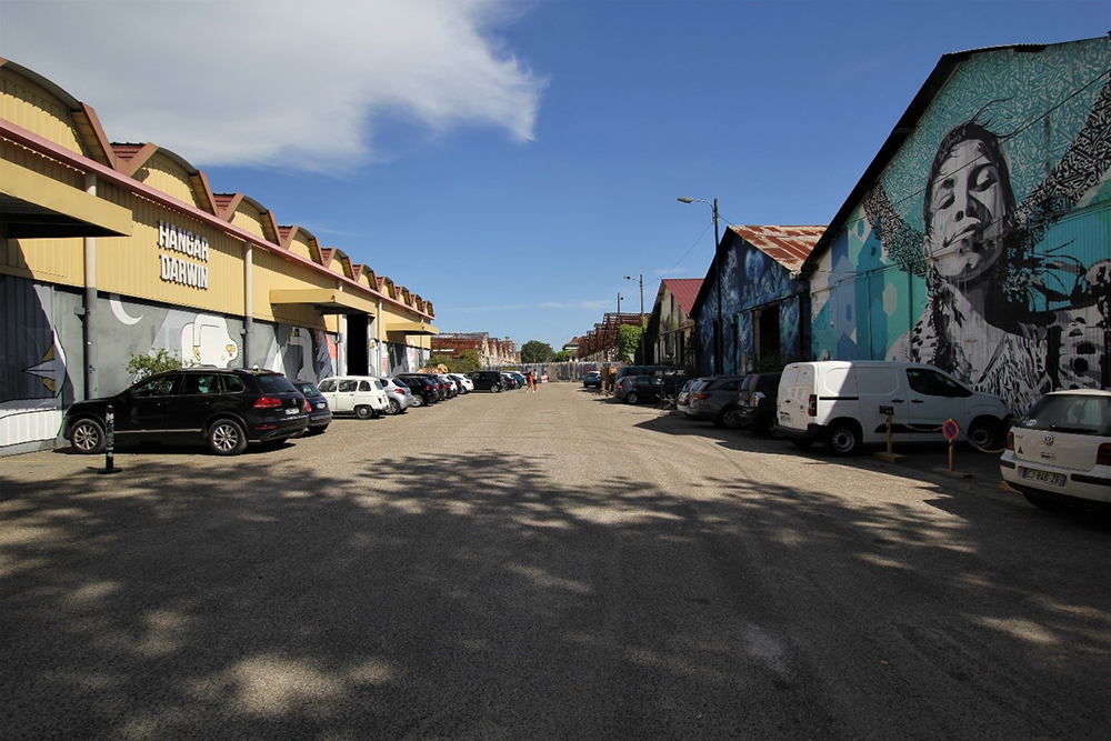 L’occupation d’emprises attenantes de manière non cadrée sera régularisée par la mise à disposition de foncier par la collectivité, via la signature des AOT reconductibles chaque année permettant aux acteurs de l’Écosystème Darwin de bénéficier d’1 hectare supplémentaire pour impulser des programmations non marchandes, revendiquées comme le cœur de « l’ADN de Darwin [8] » : création d’un skatepark couvert (AOT jusqu’en 2015), espace dédié à l’agriculture urbaine, atelier participatif de réparation de vélos, offre de locaux à destination d’associations sportives et de solidarité (AOT jusqu’en 2016).