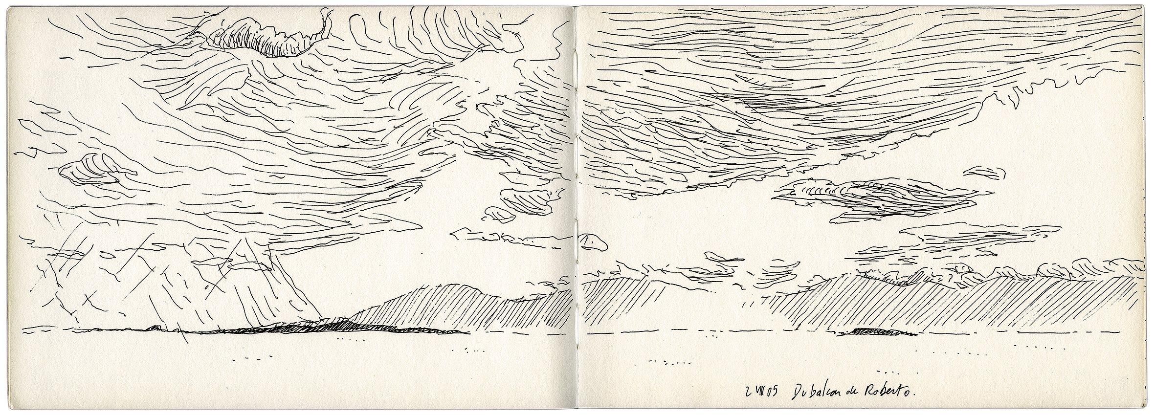 Alexis Pernet n’est pas qu’un paysagiste [3] au sens premier du terme, il est aussi paysagiste-concepteur et enseignant dans une école de paysage. Se présentant comme un « professionnel-explorateur », c’est donc un regard complet qu’il propose : de l’œil au trait, de la perception à la restitution puis à l’interprétation, et enfin à l’action collective – soit physiquement par le biais de l’aménagement, soit réglementairement par le biais de la planification. Ses voyages lui permettent d’interroger chacun des lieux qu’il arpente et retranscrit, mais aussi sa pratique en tant que paysagiste et dessinateur assidu.