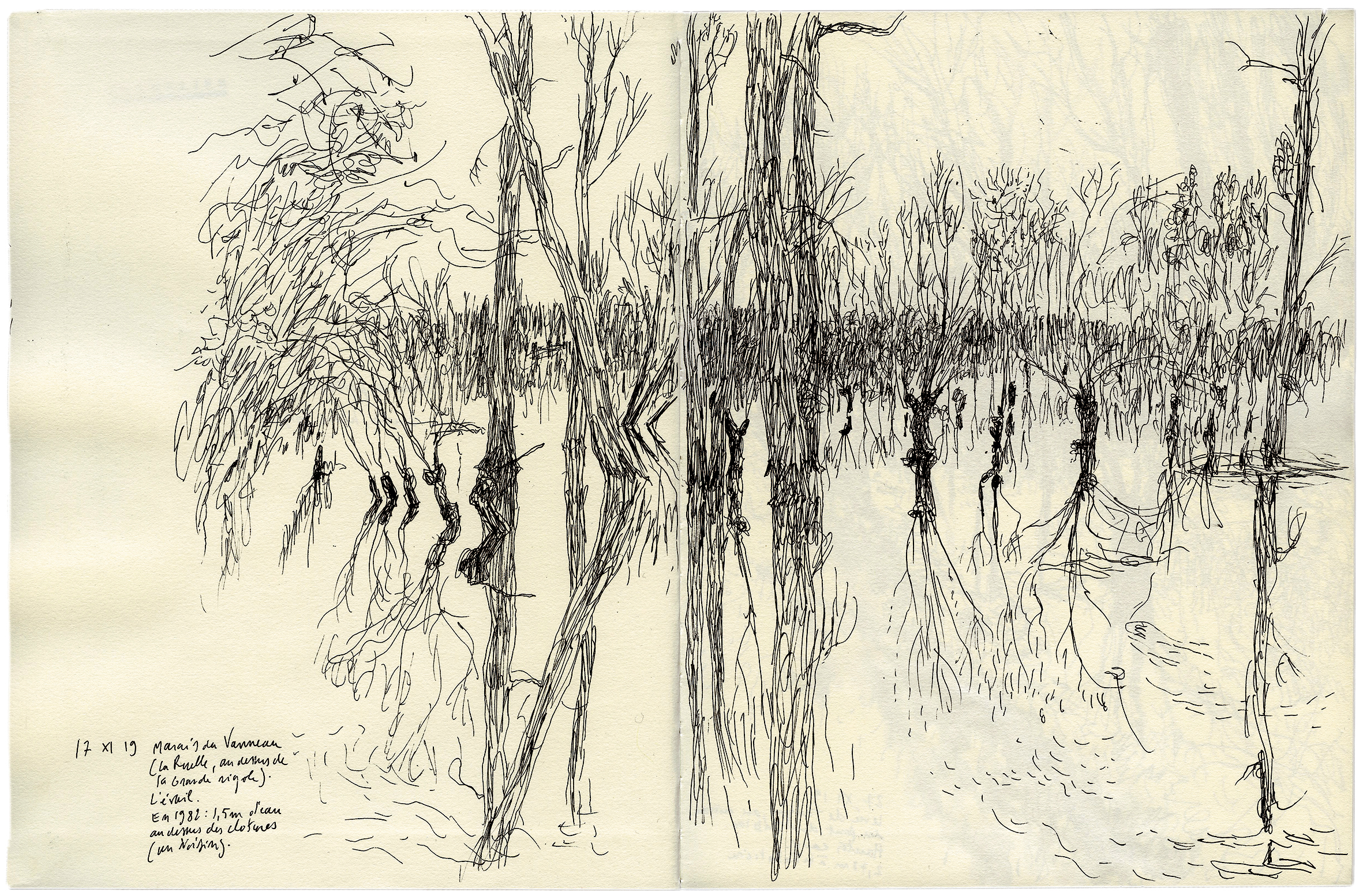 Figure 5. Carnet du marais mouillé poitevin. Marais du Vanneau-Irleau, 17 novembre 2019 Alexis Pernet, Au fil du trait. Carnets d’un arpenteur, Marseille, Parenthèses, « La nécessité du paysage », 2021.