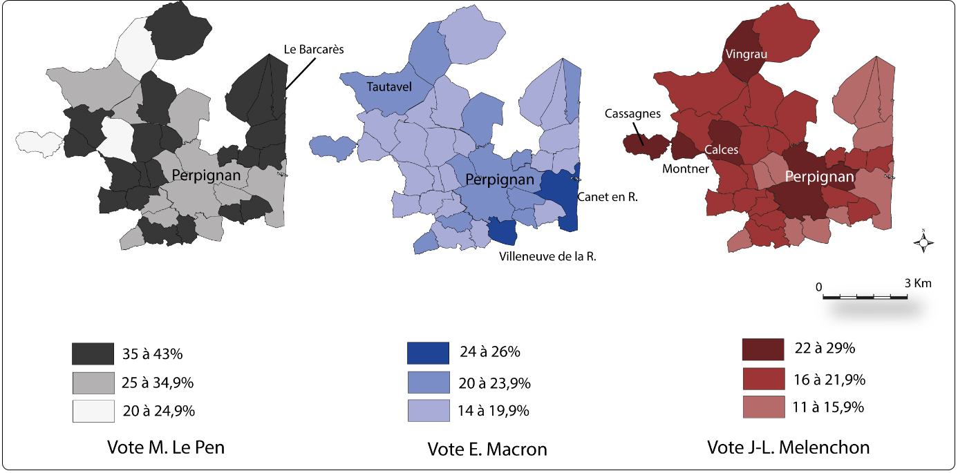 Les élections de 2022 étaient donc attendues à Perpignan, dans un contexte régional caractérisé par l’ancrage de l’extrême droite, dessinant de Perpignan à Beaucaire une possible France RN du Sud (Alidières 2018). Dans une ville pauvre (32 % de taux de pauvreté en 2019 selon l’INSEE) marquée par le poids du clientélisme politique (Maury 2008), les élections municipales ont laissé en suspens de nombreuses interrogations. Interrogations sur la nature de ce laboratoire du RN et sur la capacité de L. Aliot à initier des politiques répondant à des attentes multiples, voire contradictoires. Interrogations sur la composition hétéroclite de l’électorat RN qui, à Perpignan, fédérait en 2020 du « gitan au bourgeois ». Interrogations enfin quant à la capacité localement transformative du vote pour L. Aliot : ce dernier est-il en capacité, par son ancrage local, de faire basculer vers le RN une Métropole contrôlée par la droite et un conseil départemental détenu par la gauche ?