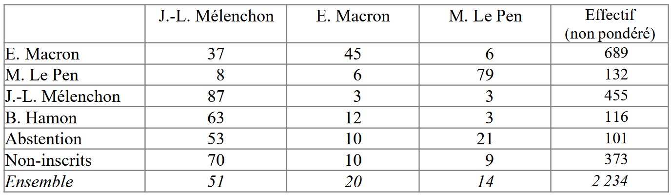 Tableau 2. Vote en 2022 selon le vote des répondants en 2017 (premier tour)