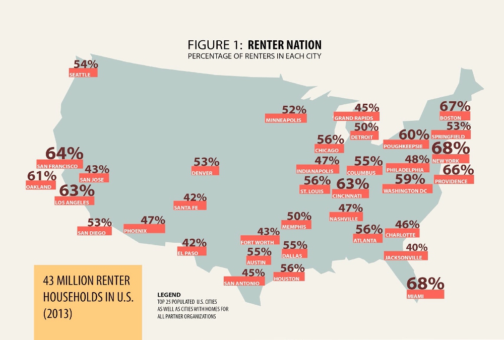 Source : map excerpted from Rise of the Renter Nation : Solutions to the Housing Affordability Crisis, a report by the Homes for All campaign of the Right to the City alliance, June 2014, p. 7.