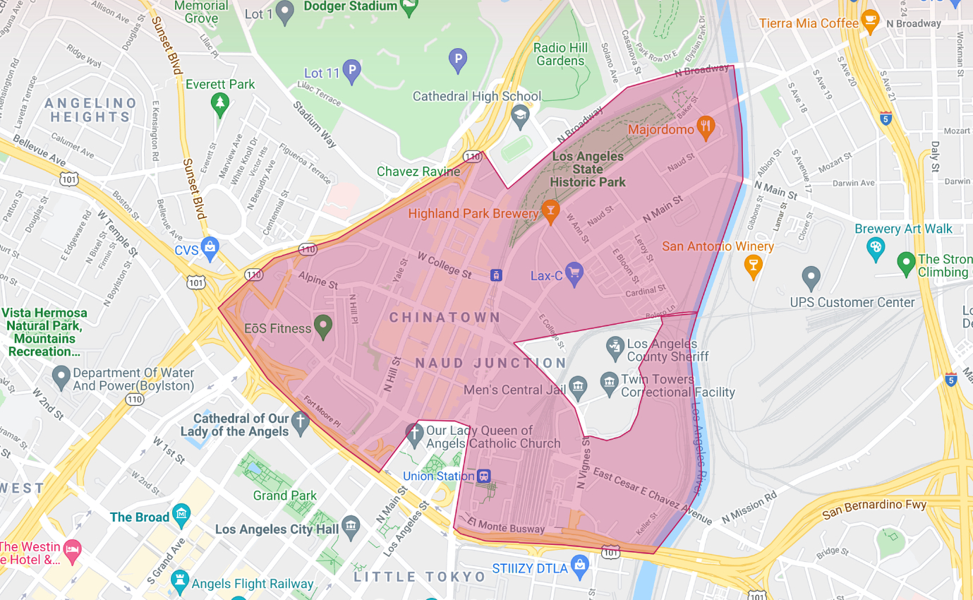 Figure 1. LA Chinatown boundary as represented by the Historic Cultural North Neighborhood Council