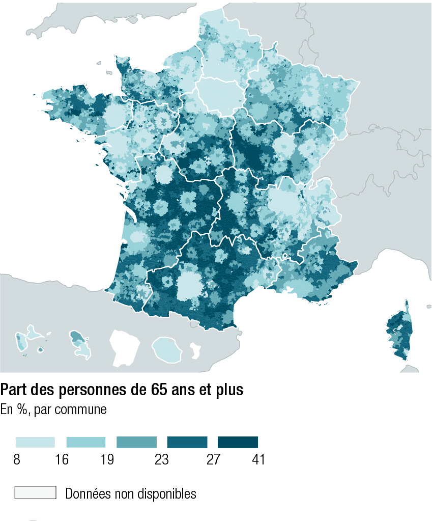 – les cartes du Commissariat général à l’égalité des territoires, ou Agence nationale pour la cohésion des territoires (CGET-ANCT), qui catégorisent les campagnes françaises, identifient la part des personnes âgées dans les territoires et l’accès aux soins ;