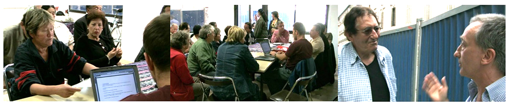 La même année sort La République de Denis Gheerbrant. Aucun aménageur ni représentant politique n’apparaît à l’écran ; le documentaire croise les histoires de vie de quelques habitant·e·s et leur combat pour rester dans leur appartement. Le réalisateur s’est intéressé à l’expérience de ce collectif soutenu par Un centre-ville pour tous, et l’écoute de « l’expérience de chacun » prime. Le projet urbain se heurte alors aussi bien aux trajectoires individuelles et familiales qu’à la pratique d’un groupe d’habitants et d’habitantes mettant en commun leurs problèmes face aux aménageurs.