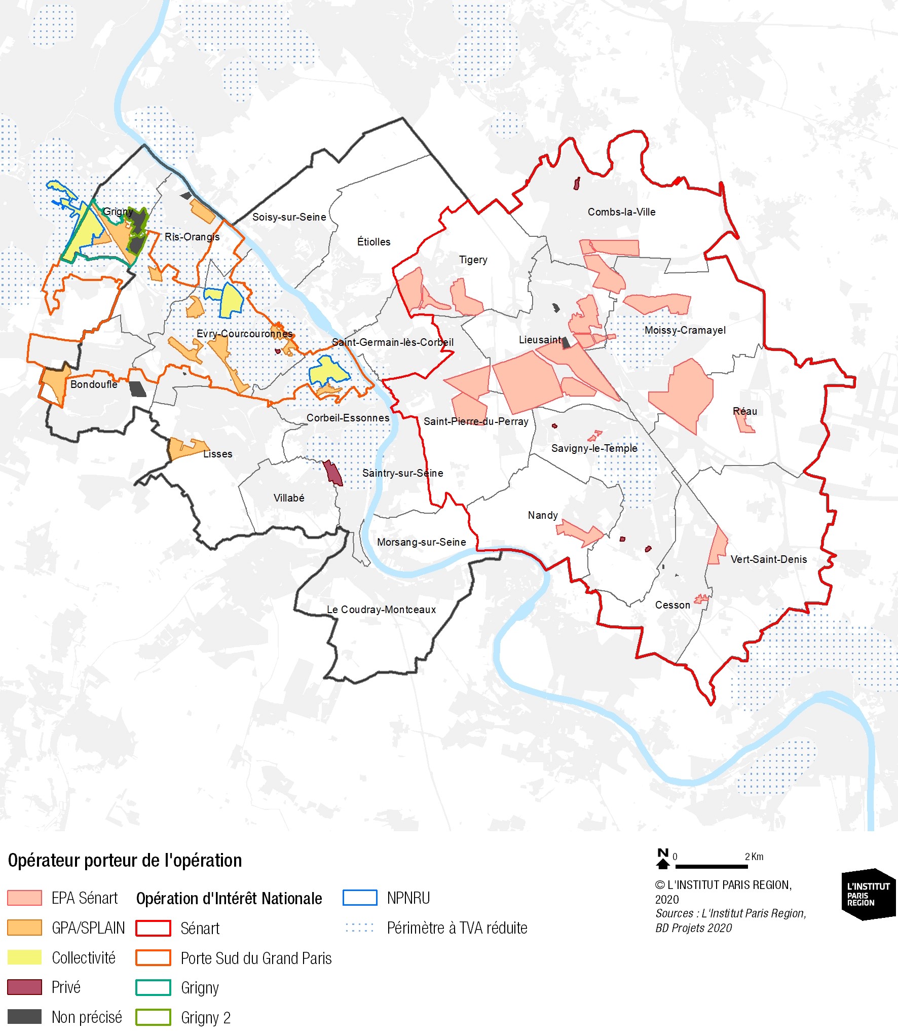 Nous proposons ici de saisir l’action publique « par le bas », en observant les territoires des intercommunalités franciliennes. Dans cette perspective, le site de Grand Paris Sud a été retenu parce qu’il revêt un double intérêt. Il s’agit d’un territoire historiquement très investi par l’État, puisqu’il compte deux ex-villes nouvelles (Évry, Sénart) aménagées, dans les années 1970-1980, sous l’autorité de deux EPA. Il constitue un révélateur de la posture paradoxale de l’État qui, tout en incitant les intercommunalités à se doter de leur propre outil d’aménagement, conserve des opérateurs en capacité de peser sur un territoire stratégique pour atteindre les objectifs de construction de 70 000 logements annuels fixés par la loi relative au Grand Paris de juin 2010.