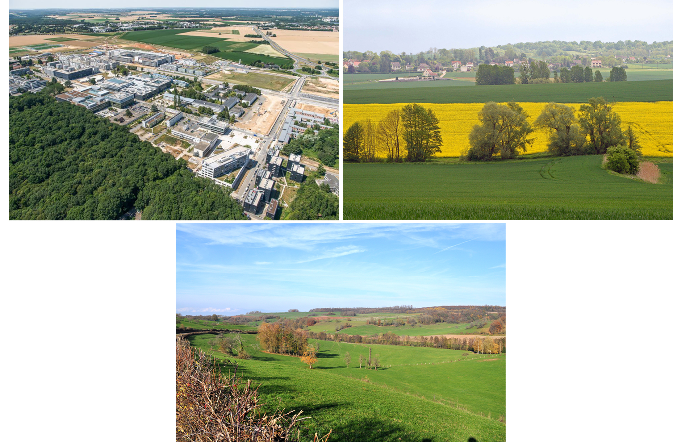 Les trois territoires choisis présentent un gradient de métropolisation. Il s’agit d’un espace périurbain de l’Ouest parisien (centré sur le plateau de Saclay), de la Brie laitière et de l’Ouest vosgien (figure 2). Pour l’atelier, une diversité de profils de participant·es a été recherchée : ils ou elles sont issu·es de la production agricole, de l’accompagnement technique ou de la formation agricole, des collectivités ou encore du milieu associatif. La composition finale (de cinq à sept personnes par territoire) tient aussi à la variabilité des dynamiques locales et du réseau partenarial entretenu par les équipes de recherche.