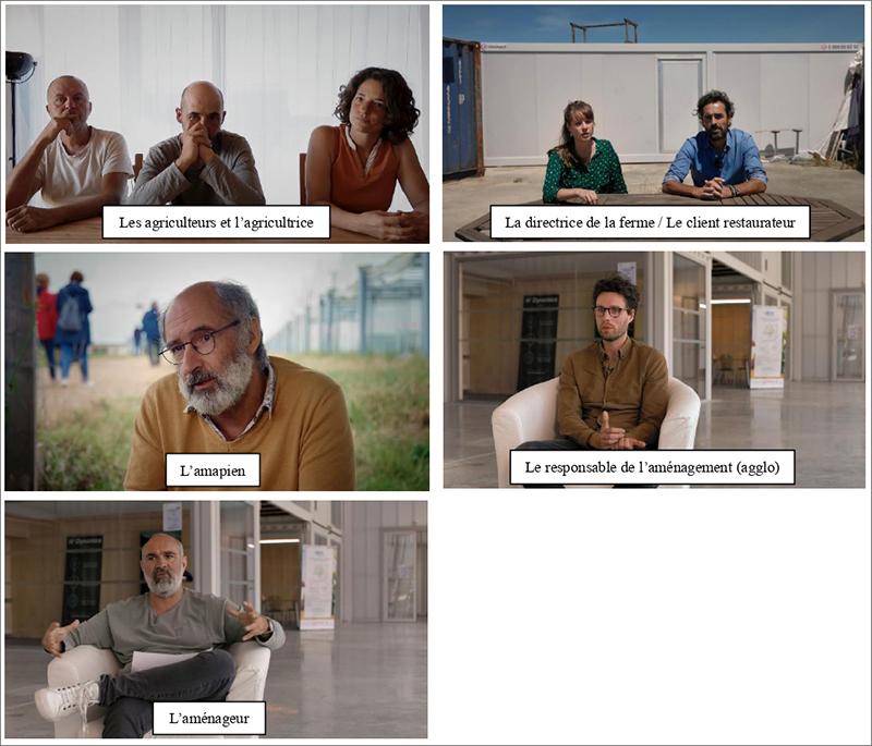 Le défi qui se posait à moi consistait à donner à voir une réalité sociale au premier abord peu engageante pour le cinéma : de l’ordre de l’organisation concrète, voire de l’ingénierie de projet. Comment rendre tout cela sensible, vivant et accessible ? L’idée, en faisant appel au film, était à la fois d’approfondir la connaissance grâce à l’image mais aussi de favoriser une discussion qui puisse sortir des murs de l’université (notamment du côté des professionnels de l’aménagement eux-mêmes). L’hypothèse du cinéma comme « transport en commun » rejoint ici l’hypothèse de la rencontre qui construit la recherche. Celle-ci pointe des positionnements d’acteurs·trices qui peuvent être sensiblement différents. Dans le film, ces différences se manifestent par exemple dans les écarts de langage des un·es et des autres : entre les mots de l’équipe de Fermes d’Avenir du groupe SOS (une des porteurs du projet) teintés de novlangue managériale, la parole très professionnalisée, voire experte des agriculteurs et de l’agricultrice (qui connaissent parfaitement bien les rouages contractuels, financiers, etc.) et les projections enthousiastes de l’aménageur et de l’agglomération, plus généralisantes. De ce point de vue, la recherche valide l’intérêt d’une discussion et la non-coïncidence spontanée des aspirations dans le projet urbain.