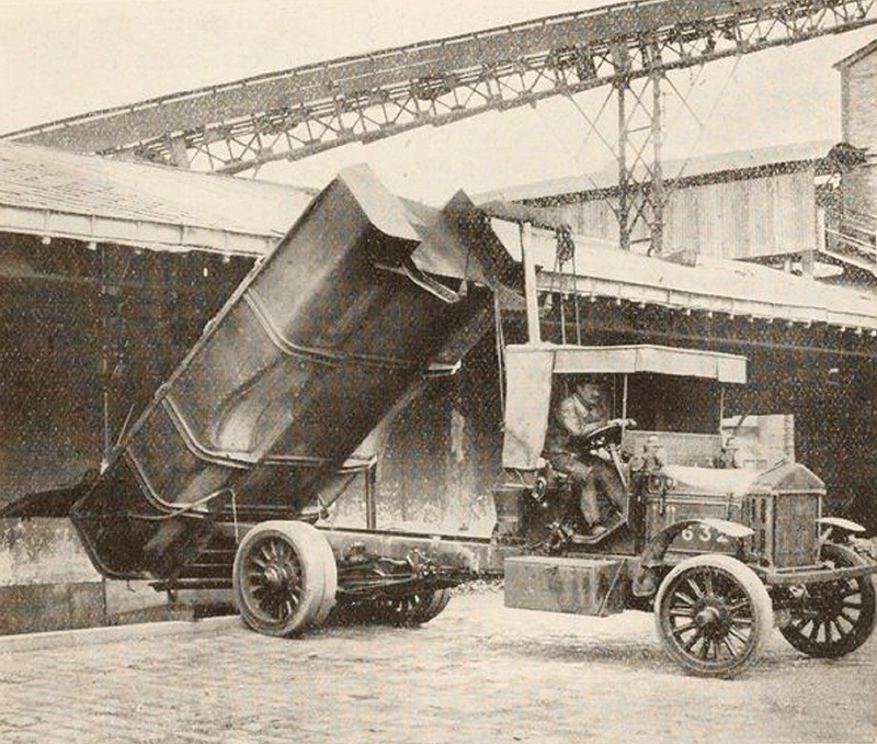 Au cours des années 1920, un double processus socio-économique limite l’exercice du chiffonnage à Paris. D’une part, les auto-tombereaux mécanisés, gérés par les conducteurs et balayeurs employés par la Direction générale des travaux de Paris de la préfecture, prennent de l’importance dans la collecte des déchets (figure 1). En outre, les poubelles fermées deviennent la norme municipale, tandis que la valeur économique des matériaux, tels que le papier, le chiffon ou le verre baisse (Barles 2005, p. 213-214). D’autre part, la réutilisation des ordures ménagères a évolué. La fabrication d’engrais agricole est progressivement marginalisée en faveur de la production d’électricité par incinération. Cela devient l’objectif le plus rentable pour la nouvelle société de l’enlèvement des déchets urbains parisien (Traitement industriel des résidus urbains, TIRU). Selon ses sources, le nombre de tonnes incinérées est doublé entre 1922 et 1927. Elles passent de 31,9 % du total des résidus collectés à 57,8 % [8]. Les matériaux qui ne sont pas brûlés sont acheminés vers les nouvelles décharges mises en place dans d’anciennes carrières de la banlieue (Villejuif, Sucy-Bonneuil) et aussi plus loin par voie ferrée (Saint-Escobille, Orry-la-Ville, Liancourt-Saint-Pierre).