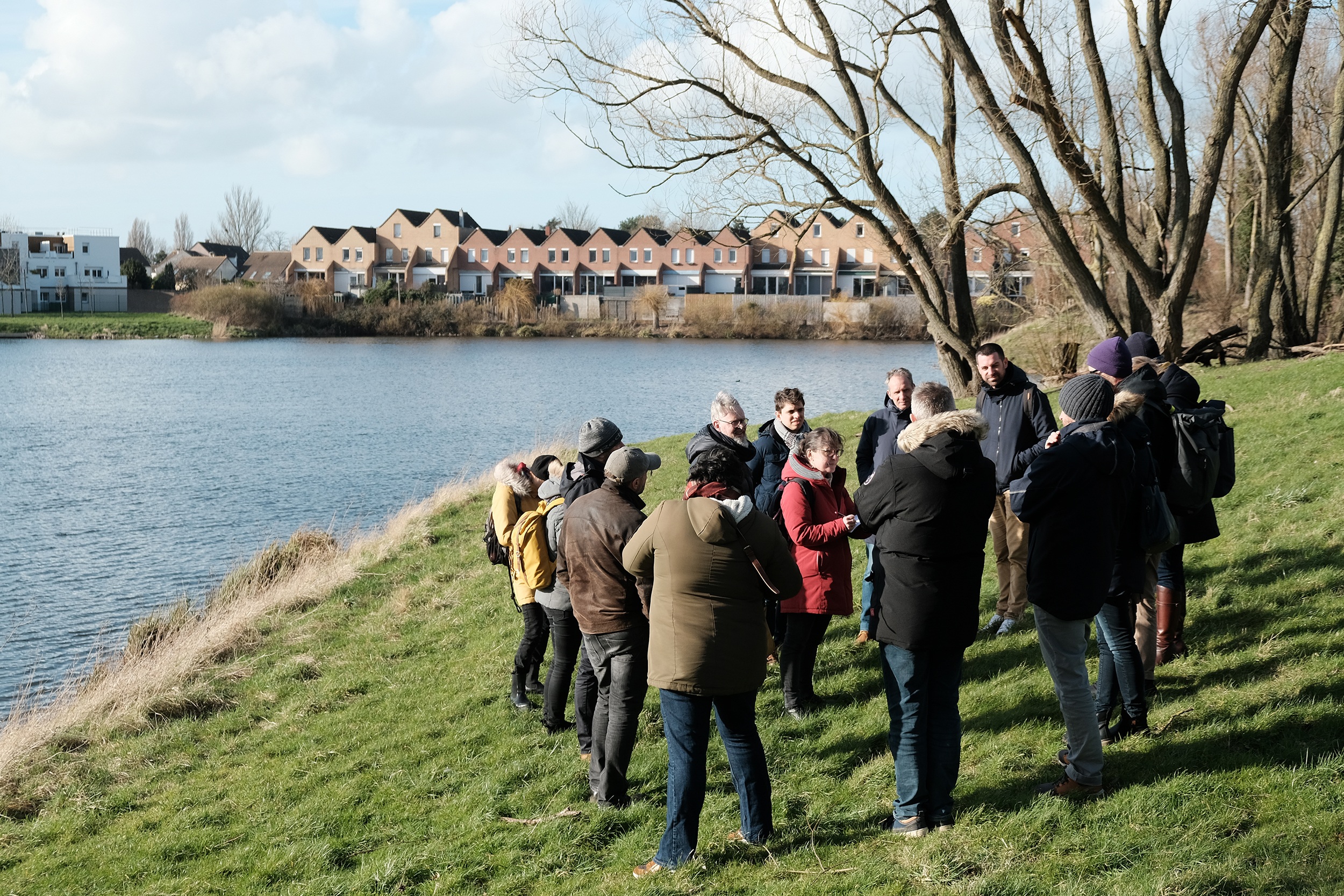 Photo 1. Principe de causerie à Grande-Synthe. Moment d’échange sur le rapport entre les formes urbaines et le cadre de vie.