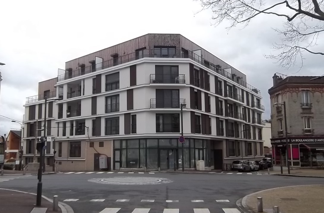 Le décalage entre la construction effective de logements sociaux et la faible progression du taux SRU s’explique par la construction parallèle de logements privés. Dans les communes initialement déficitaires yvelinoises, il apparaît que ces logements ne représentent que près de 60 % des nouveaux logements, entravant ainsi la progression du taux SRU. Cette tendance limite de fait la mixité dans la mesure où les nouveaux logements sociaux sont dilués dans de plus vastes ensembles privés. Autrement dit, comme l’explique Fabien Desage pour qualifier ce processus également à l’œuvre à Lille, Nantes et Montréal, les communes vont « construire du logement social pour construire du logement privé » (Desage 2017, p. 17). Concrètement, cela se traduit par une explosion de la Vente en l’état futur d’achèvement (VEFA), pratique par laquelle les bailleurs sociaux achètent une partie minoritaire d’un ensemble immobilier construit par un promoteur privé. Résiduelle jusqu’à la fin des années 2000, la VEFA représente désormais près des deux tiers des nouveaux logements sociaux réalisés en zone tendue. En VEFA, les logements sociaux sont, d’un point de vue extérieur, complètement indissociables des logements privés (voir figure 2) tout en étant nettement séparés par cages d’escalier. Au total, ces opérations font cohabiter une majorité de propriétaires appartenant aux catégories aisées et de locataires du secteur privé appartenant plutôt aux catégories moyennes avec une minorité de locataires appartenant plutôt aux catégories populaires, ces derniers étant le plus souvent liés à la commune (Desage 2017).