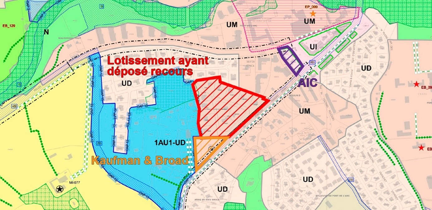 Au Pont-de-l’Arc, les habitants d’un lotissement ont déposé des recours contre deux demandes de permis de construire prévoyant des densités trop élevées à leurs yeux au regard de l’environnement pavillonnaire. Un de ces projets, notamment celui que le promoteur Kaufman & Broad avait déposé pour une opération de grande envergure, à proximité immédiate du lotissement, incluait des logements sociaux.