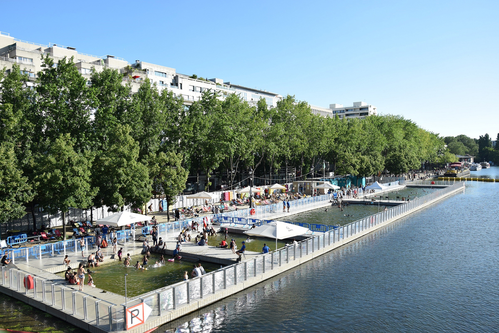Il reste très difficile de se baigner en dehors des piscines dans les territoires fortement urbanisés. Si, à Paris, La baignade du Bassin de la Villette a été inaugurée dans le canal en 2017, elle n’est ouverte que quelques semaines dans l’année, et la pratique y est très encadrée. Les bassins sont séparés du reste du cours d’eau, l’entrée limitée à 500 personnes maximum, et une surveillance multiple est assumée par des services de sécurité privés et des MNS employés par la Mairie de Paris. Les coûts de fonctionnement sont élevés et la capacité d’accueil est vite insuffisante les jours de grande chaleur ou en fin de semaine.