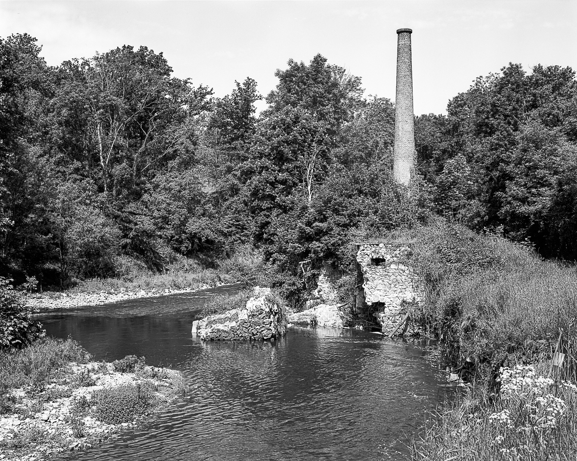 Les photographies montrent les symptômes matériels des rapports utilitaires et conflictuels à la rivière. Quarante ans après la fermeture des dernières mines et grandes usines de la région, le Furan remplit encore une fonction infrastructurelle, avec ce que cela implique d’absence de visibilité. Situées à l’opposé des façades sur rues, ses rives sont un envers de la ville et des fiertés ronflantes de l’aventure industrielle. Toutefois, parce qu’il représente plus d’une centaine de sites, ce travail permet de nuancer l’image d’un Furan souillé. Malgré une surexploitation aux abords de la ville, il retrouve de sa superbe naturelle lorsqu’il s’en éloigne.
