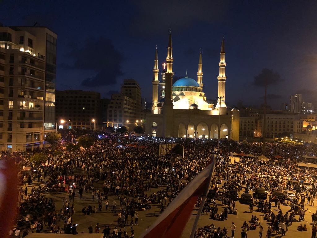 Thousands of protesters on Martyrs’ Square during the first weekend of demonstrations (October 20, 2019).