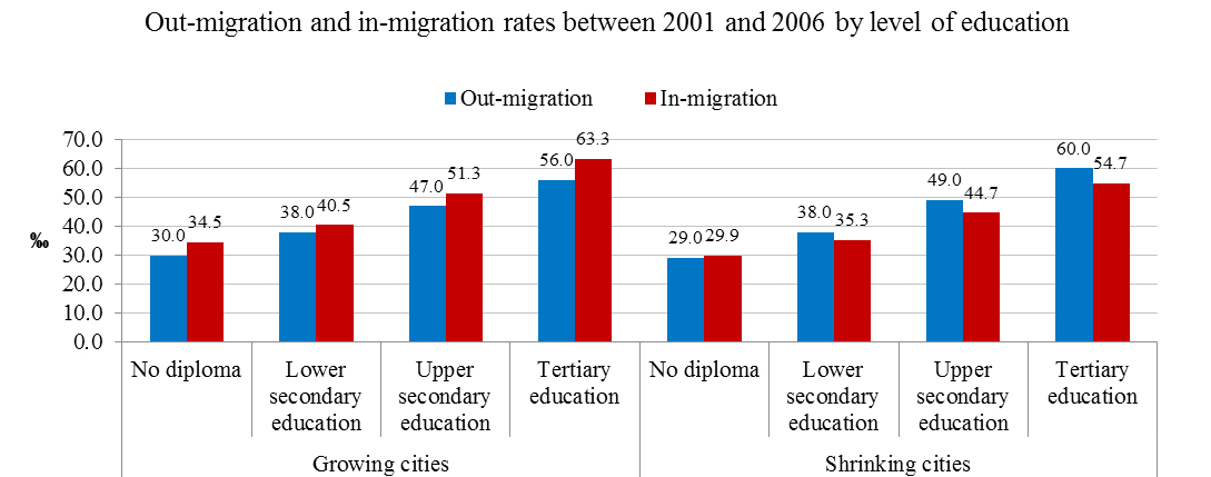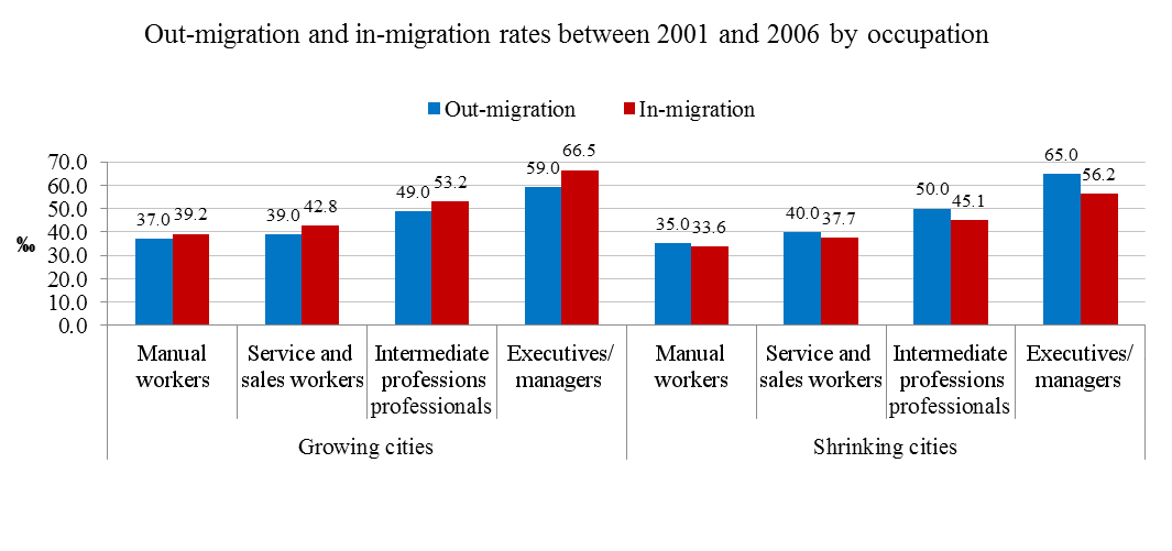 Here, we shall focus on indicators relating to individuals’ level of qualification, occupation and age, with the aim of determining whether residential flows are similar in shrinking and growing cities.