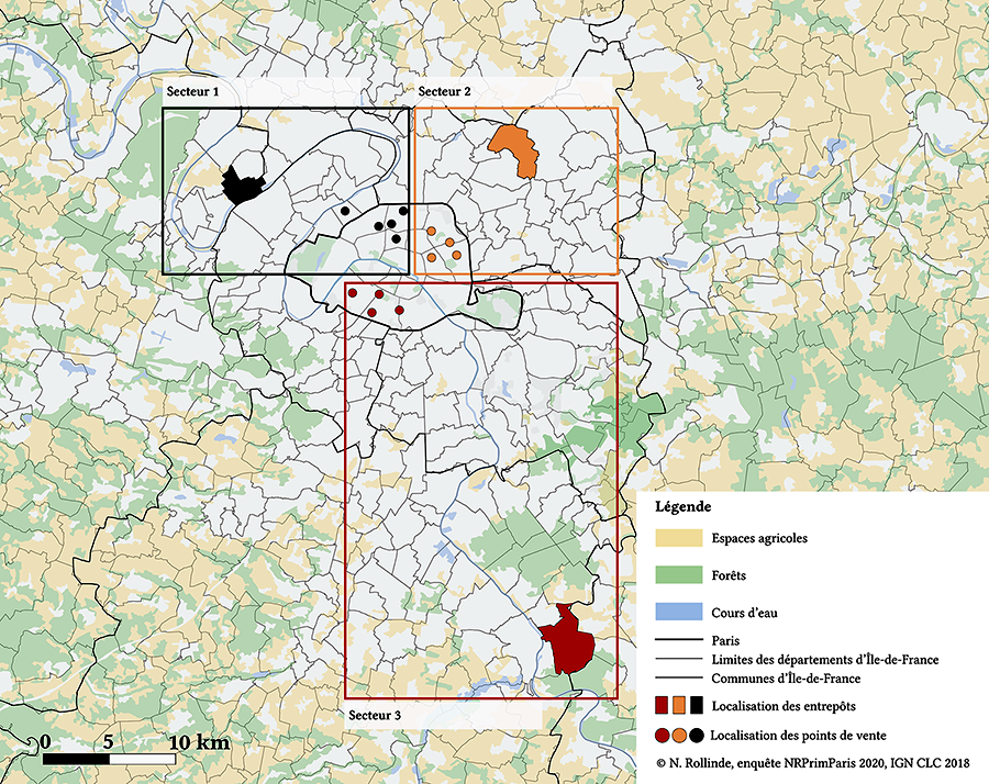 Ces adaptations reconfigurent les rapports entre chaque maillon du système alimentaire. À Paris, ce processus est particulièrement visible dans la filière des fruits et légumes. Ce secteur, dont le fonctionnement est emblématique de la distribution alimentaire spécialisée depuis la seconde moitié du XXe siècle (Bernard de Raymond 2013), concentre aussi des initiatives en circuits courts ou de proximité, portées notamment par des primeurs (Laithier et Vauléon 2022). Cet article s’intéresse à la façon dont ces commerçants redéfinissent leur rôle en tant qu’intermédiaire pour contribuer à une transformation du système alimentaire. Il s’appuie sur un terrain réalisé en 2019 et 2020 (Rollinde 2023) : une première étape d’enquête par questionnaire avait pour but de caractériser les pratiques d’approvisionnement des primeurs parisiens, puis des entretiens auprès d’une partie d’entre eux ont permis de questionner leur rapport au métier d’intermédiaire de la distribution [1].