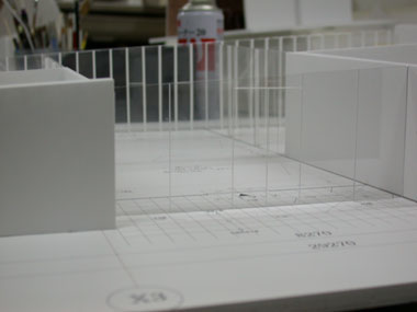 Des œufs, il y en a effectivement beaucoup dans Studies in Organic. C’est manifeste dans le livre, qui recèle beaucoup de motifs à explorer, de lignes à tracer. Ça l’est encore davantage dans l’exposition du même nom qui a eu lieu en décembre 2009, à la Galerie MA, à Tôkyô – comme me le fait remarquer Kuma, une année précisément après une autre exposition, consacrée à Ando (« Challenges, Faithful to the Basis » dans laquelle Ando cherche à montrer ce qui est précisément inchangé dans son architecture depuis ses débuts). Dans une première salle, sur une estrade en U, des maquettes, échantillons de matériaux, plans, de différents projets. Dans le lot, la maquette du livre lui-même, avec la copie relue, annotée, celle de feuillets qui composent le texte – la pensée au travail, encore une fois, qui s’élabore conjointement dans les maquettes et dans l’écriture (et le concept ne précédant pas l’expérimentation, mais simplement en faisant partie). L’exposition se décline en trois parties, qui sont aussi celles du livre : « Contour » (le contour comme la « tension » extrême entre celui qui entreprend d’enterrer l’objet pour le faire disparaître et l’objet lui-même qui résiste), « Texture » (les matériaux, saisis pour leurs propriétés distinctives, par leurs détails essentiels, par leurs particules), « Organisation » (les essais d’agencement de la texture à l’environnement destiné à la recevoir, les manipulations, les motifs).