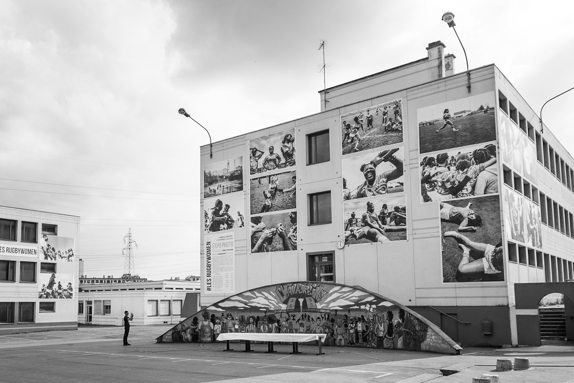 Photography, in this survey, was a way to build a narrative about the group’s experience. It wasn’t just about taking pictures of everything I observed ; I was involved in creating a visual narrative, which involved aesthetic and narrative choices. The images were a way of affirming a certain idea of the experience, but also of the values promoted on the field of play : self-confidence, discipline, solidarity, the enhancement of the bodies and the sporting capacities of girls. The underwater, black and white, the distortion of wide-angle lenses and the predominance of shapes over colours were for me a way of “depicting” the daily life of the rugbywomen through a precise aesthetic commitment. Instead of neutrally “representing” the “footprint” of an observed situation, I post-produced a narrative based on black and white images. Engaged in a sport often perceived as “too masculine” or “too violent” for girls, rugby was a way to assert yourself and gain self-confidence. The aesthetic choice of the contrasting black and white images was for me a way of depicting their strength and tenacity on the ground, but also in their daily lives in Sarcelles.