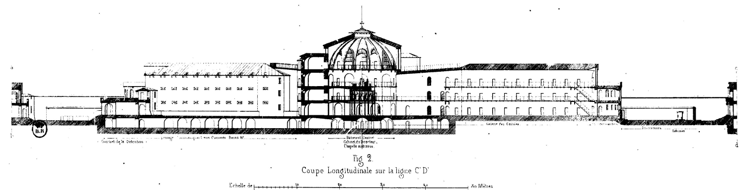 [...] je puis, en raison de ma spécialité, voir les choses sous leur double point de vue, d’abord, dans une certaine mesure, sous le rapport administratif qui en fait la base fondamentale, puis, sous celui de la construction qui s’y rattache si étroitement qu’on peut dire qu’elle en est l’expression. […] Un architecte peut, par des combinaisons bien entendues, faire admettre tel ou tel système d’emprisonnement que la théorie eût peut-être rangé au nombre des utopies [11].