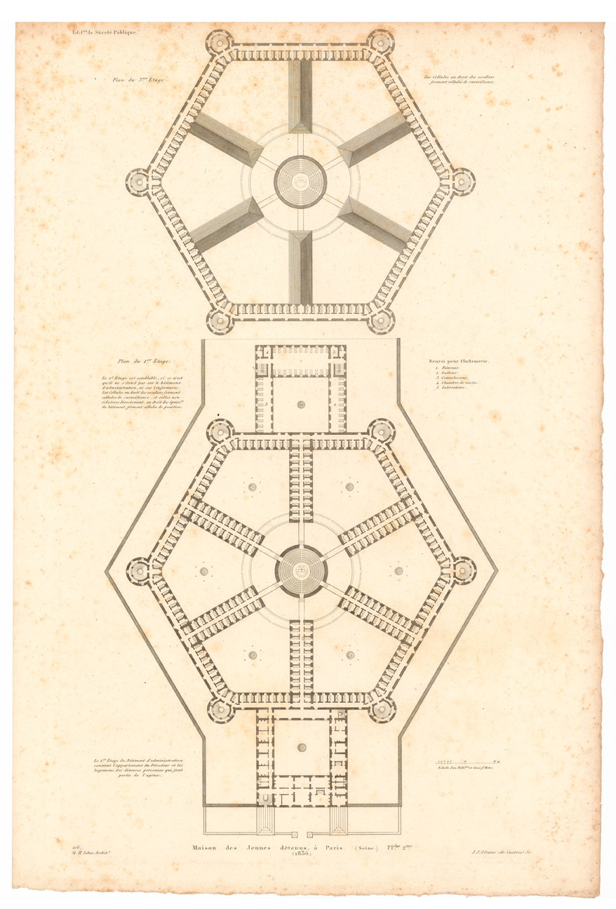 Nombre de réflexions portent à la fois sur l’efficacité des modèles architecturaux en matière de gestion, mais également sur leur capacité à favoriser la correction des détenus. Les inspecteurs généraux des prisons Charles Lucas et Moreau-Christophe, Alexis de Tocqueville et Gustave de Beaumont, pour ne citer qu’eux, cherchent à définir les règles et les contours de la peine carcérale.