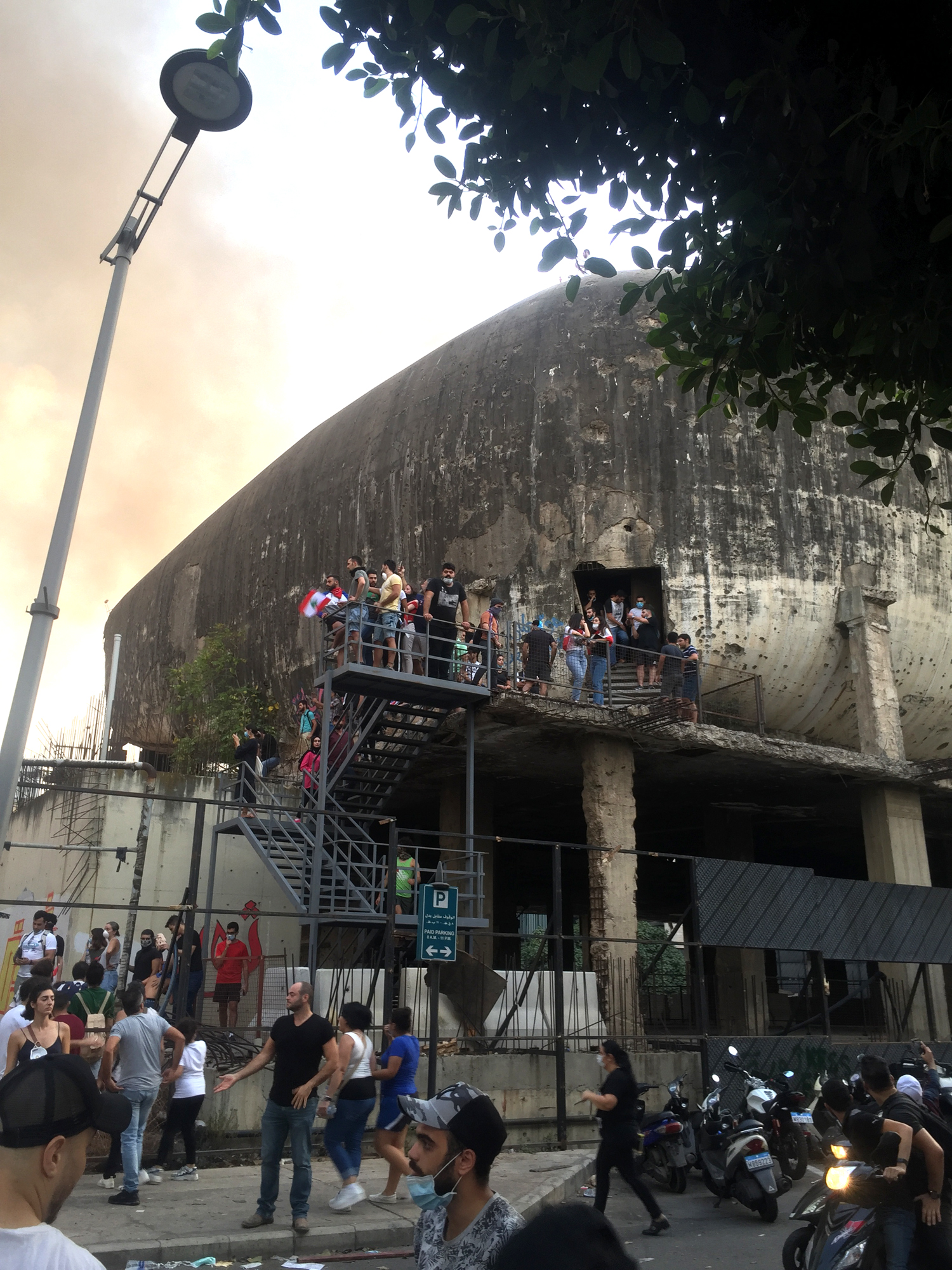 Alors ici et là, on fait tomber les barrières psychologiques de la peur de « l’autre » et de l’interdit : ensemble on (re)découvre le Grand Théâtre, œuvre de l’architecte Youssef Aftimos, et le cinéma City Center, surnommé l’Egg, dessiné par l’architecte libanais Joseph Philippe Karam au début des années soixante. À l’abandon depuis la guerre, sa carcasse éventrée est depuis devenue un symbole de la ville, et aujourd’hui de la révolte. Très fréquentés avant la guerre, ces deux espaces culturels ont subi de nombreuses dégradations pendant les 15 années de conflit et sont depuis lors laissés dans leur état de délabrement, barricadés derrière des panneaux de protection empêchant les passants de les approcher. En 2015, lors du mouvement « Vous puez », né de la crise de la gestion des ordures dans le pays, l’accès du Grand Théâtre avait déjà été forcé par les manifestants. Aujourd’hui, ces deux lieux sont devenus les symboles de la réappropriation de leur patrimoine par les Libanais ; ils sont nombreux à le considérer comme confisqué par Solidere (l’accès au Grand Théâtre a toutefois été de nouveau interdit en raison des risques d’accidents et d’effondrement). Depuis le début des manifestations, l’Egg accueille quant à lui projections, débats et événements festifs organisés spontanément par la population et les associations, et certains se prennent à rêver de sa transformation permanente en lieu culturel.