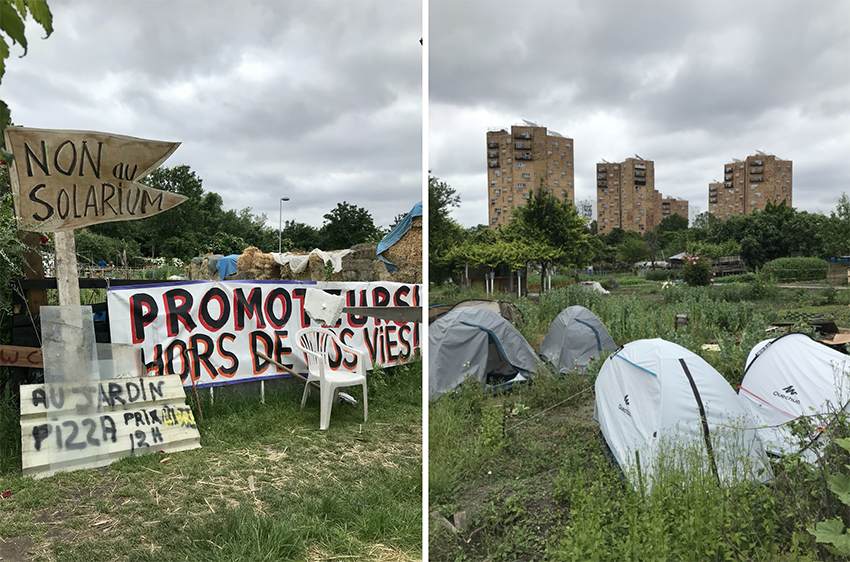 Allotments and community gardens, while highly productive, are on the other hand frequently marked by a “mobilization deficit” (Robert-Bœuf 2019). Unlike shared gardens or occupation gardens, which are intended to be visible (Granchamp and Glatron 2021), they occupy a discreet place in the public arena. Public utility inquiries, expropriations for reasons of public utility, non-renewed leases and powerful public-private partnerships between elected representatives, investors, developers and promoters all contribute to the disappearance of community gardens that stand in the way of future urban projects. [3] But at the Vertus gardens, against all odds, the managing association’s collaboration with the developers prompted a group of dissident gardeners to band together to make their protest heard. A collective to defend the Aubervilliers allotments was formed at the end of summer 2020, and began to mobilize.